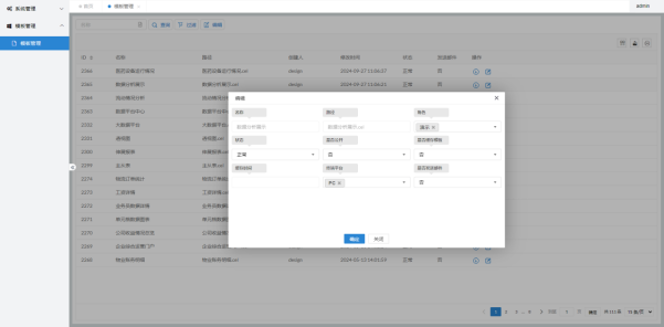 报表设计人员设计好模板后,使用后台管理人员登录后台,进行模板分配。系统提供默认的后台管理账号admin,密码123456。
